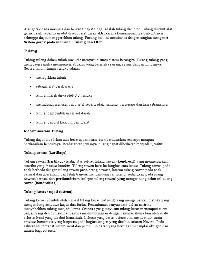 Sistem gerak manusia terdiri atas tulang dan otot. Jika tulang sebagai alat gerak aktif dan otot sebagai alat gerak pasif dalam keadaan baik, gerak dapat terjadi dengan lancar. Kerja sama antara kedua alat gerak tersebut membentuk suatu sistem yang.