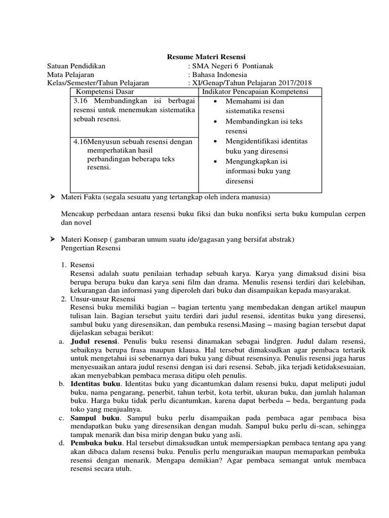 Dan dapat dikatakan bahwa resensi adalah mengulas kembali sebuah karya menurut sudut pandang diri sendiri selaku pihak yang menikmati. Contoh cerita fiksi adalah cerpen, novel, cerita rakyat (fabel, mitos). Menurut Alternbernd dan Lewis, Fiksi adalah menyajikan permasalahan manusia dan kemanusiaan, hidup dan kehidupan.