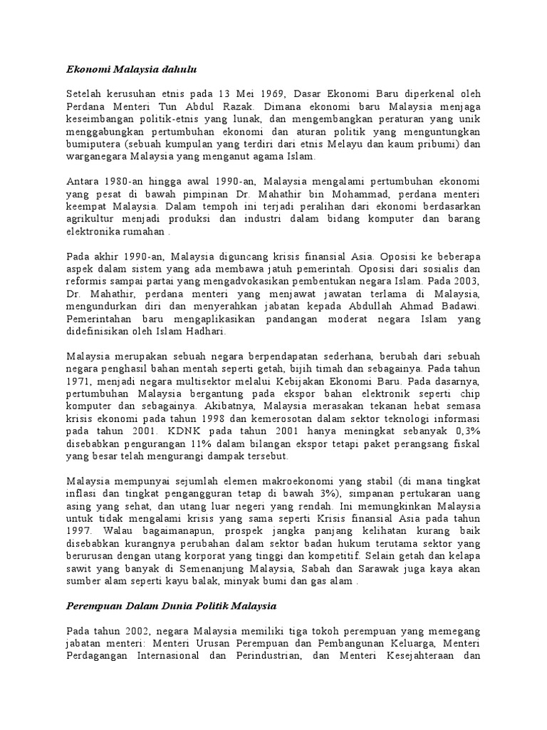 Kebijakan Ekonomi Malaysia