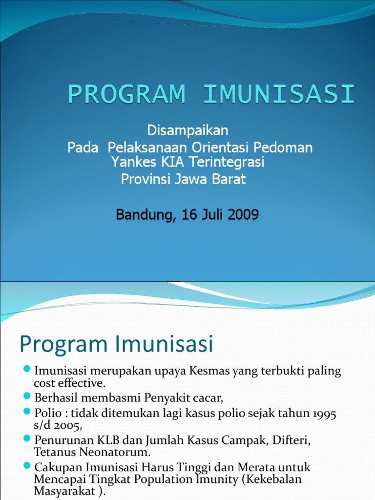 Imunisasi adalah salah satu cara yang amat berkesan untuk melindungi kanak-kanak seterusnya Justeru itu, Kementerian Kesihatan Malaysia telah melaksanakan program imunisasi ini bagi. Istilah program imunisasi nasional bisa saling dipertukarkan dengan program pengembangan imunisasi (EPI) yang awalnya terfokus pada pencegahan penyakit yang dapat dicegah dengan. Pertama adalah hukum imunisasi dan yang kedua kehalalan dari vaksin.