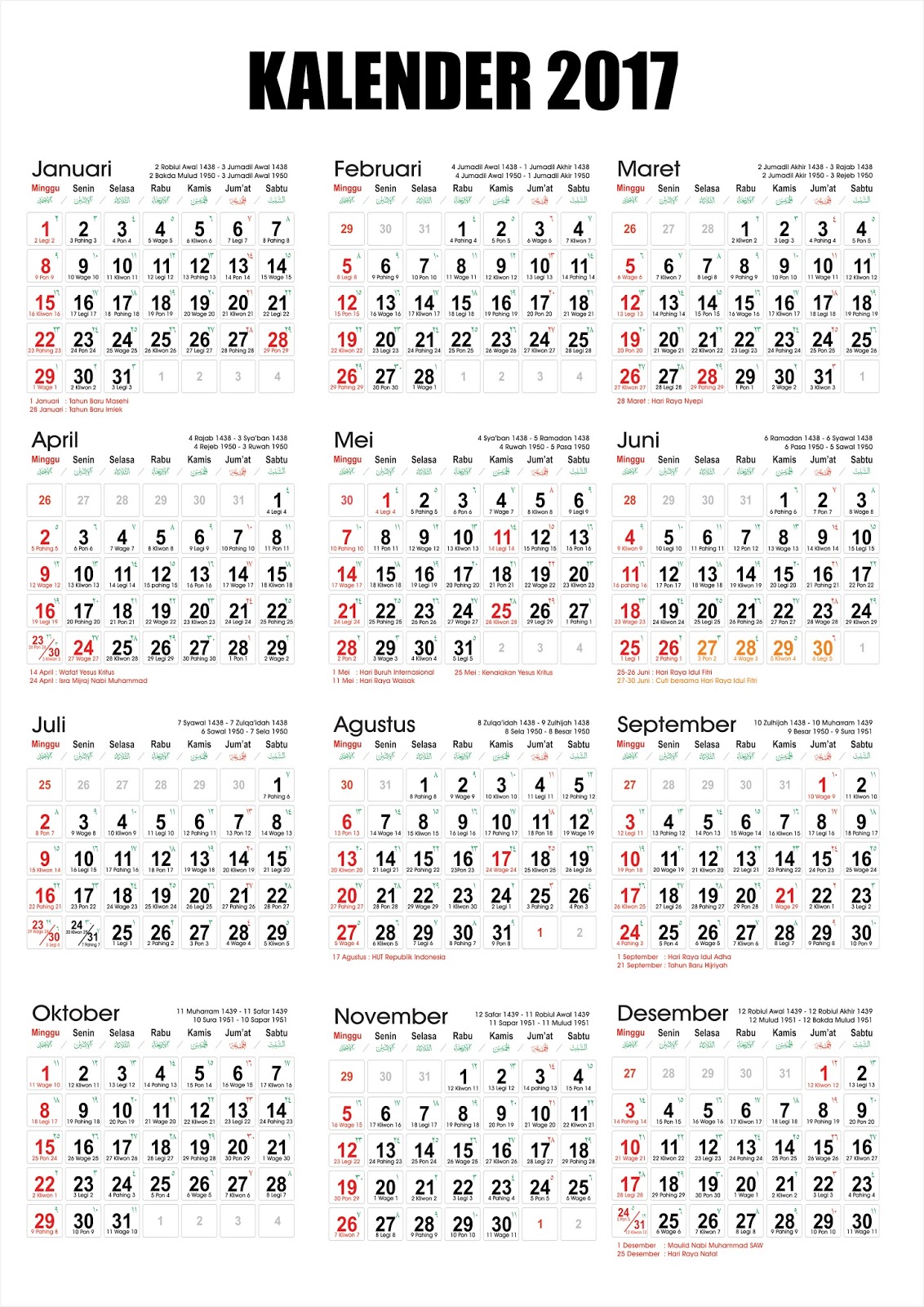Kalender 2014 (Masehi/Hijriah/Jawa) dan Hari Libur ...
