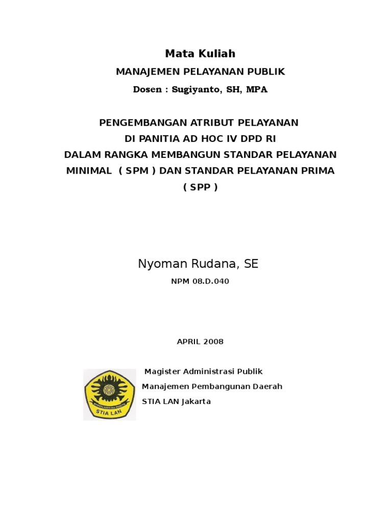 Standar Pelayanan Minimal Pdf. Tata Kelola Penerapan Standar Pelayanan Minimal (SPM) Bidang Kesehatan untuk Kabupaten/Kota. JENIS LAYANAN STANDAR PELAYANAN MINIMAL BIDANG KESEHATAN.docx (/jenislayanan-standar-pelayanan-minimal-bidangkesehatan-docx) VIEW M ORE.