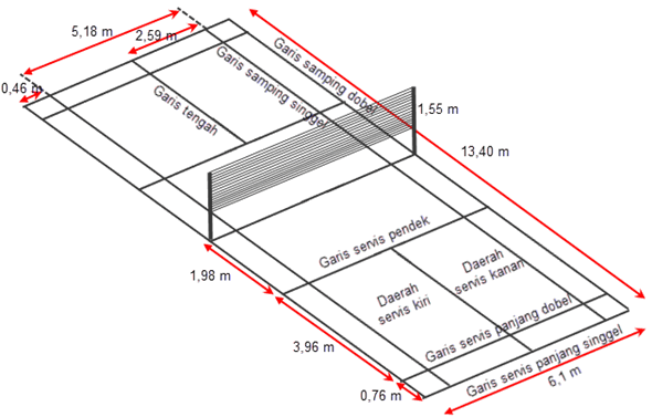 Ukuran Lapangan Bulu Tangkis / Bentuk / Garis / Gambar ...