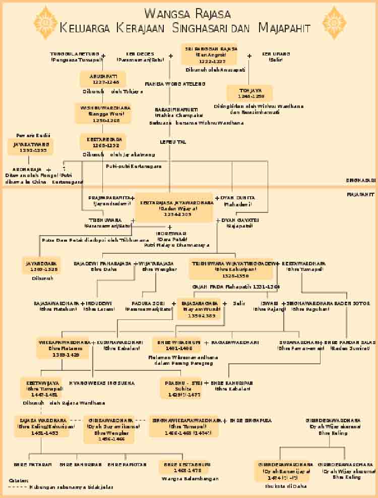 Setelah Raja Kertanegara wafat dalam penyerangan Jayakatwang dari Kediri, maka berakhir pula riwayat Kerajaan Singasari. Raja-raja yang pernah berkuasa di Kerajaan Majapahit merupakan penerus dari keluarga Kerajaan Singasari. Kerajaan Majapahit - merupakan salah satu kerajaan terbesar di Indonesia yang bercorak Hindu dan terletak di Jawa Timur.