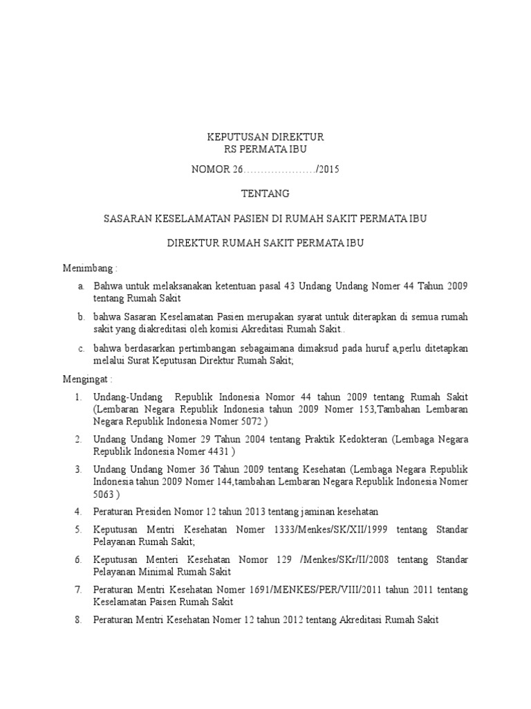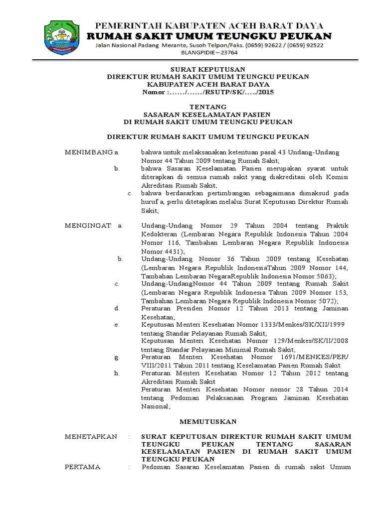 SK Direktur RSUTP Ttg Pedoman Sasaran Keselamatan Pasien ...