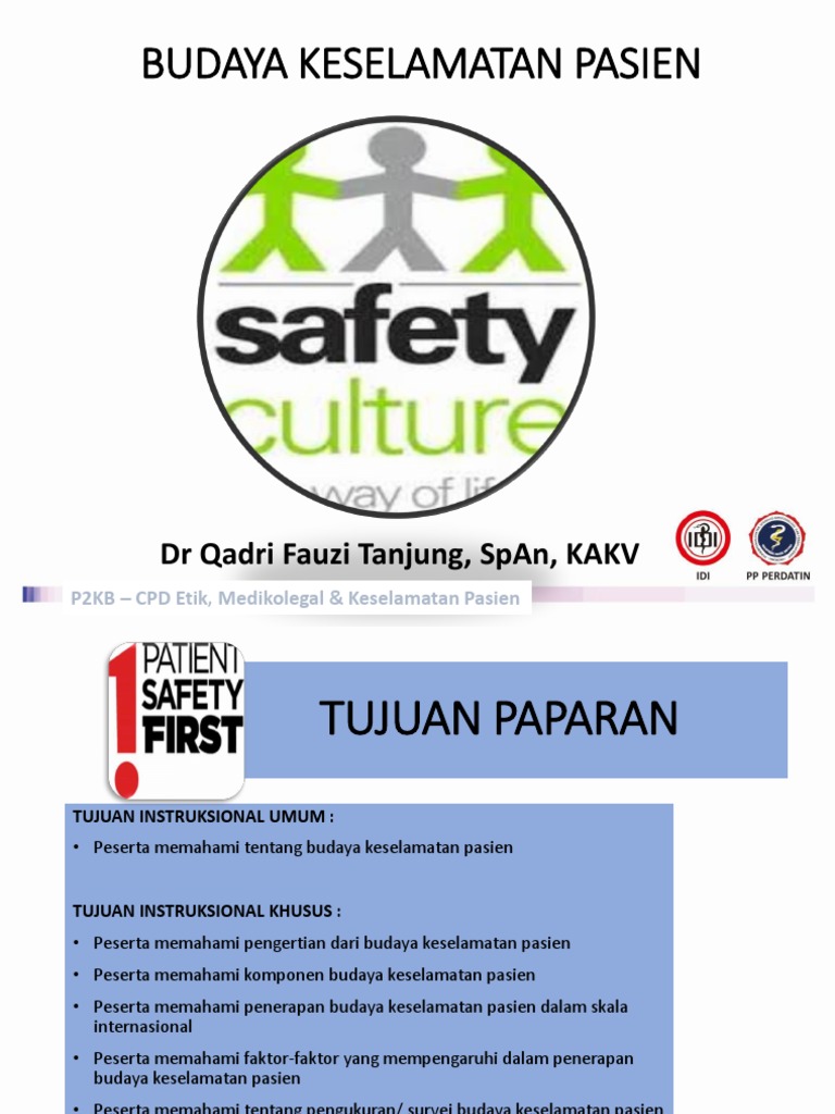 Masih adanya kejadian tidak diingin Semakin jelas bahwa keselamatan pasien telah menjadi satu disiplin ilmu tersendiri, lengkap dengan.