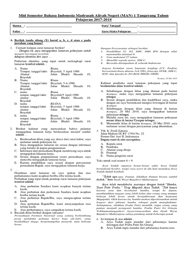 Berilah tanda silang pada huruf A,B,C dan D sebagai ...