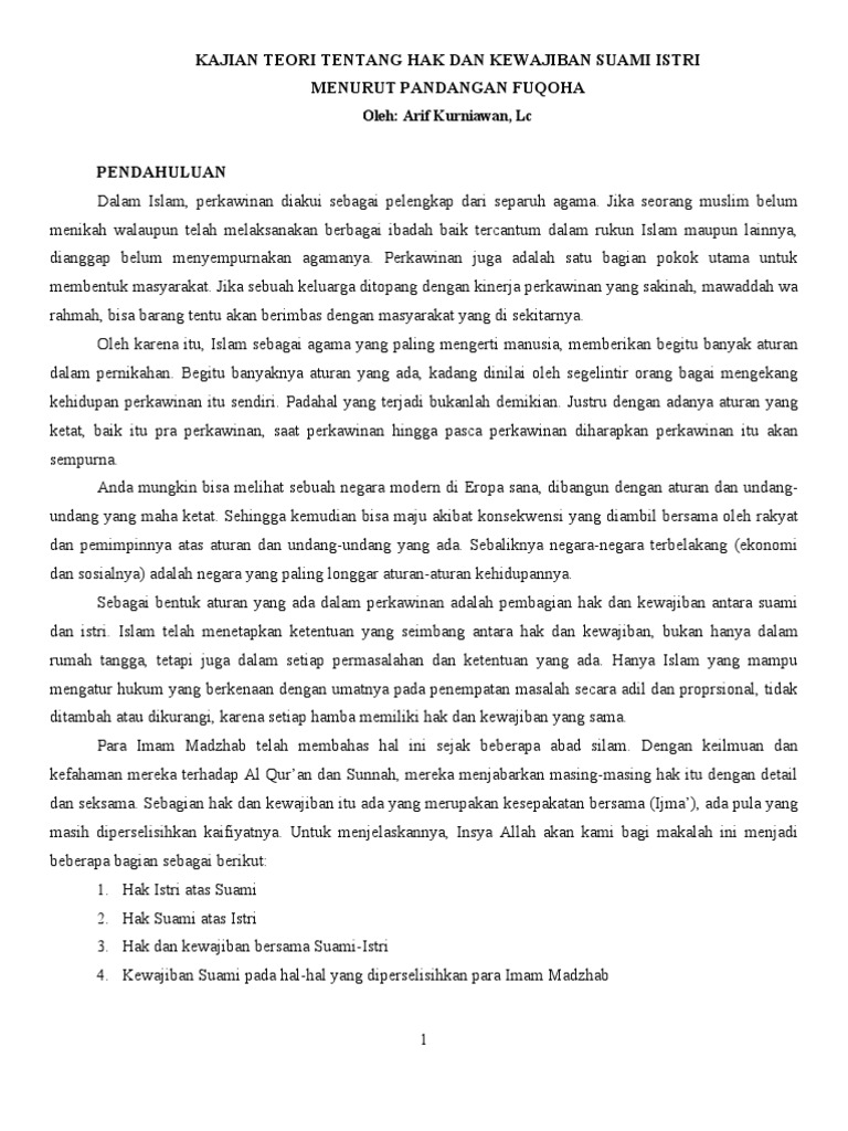 Kajian Teori Tentang Hak Dan Kewajiban Suami Istri