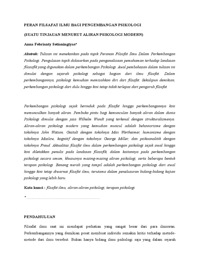 Peran Filsafat Ilmu Bagi Pengembangan Psikologi