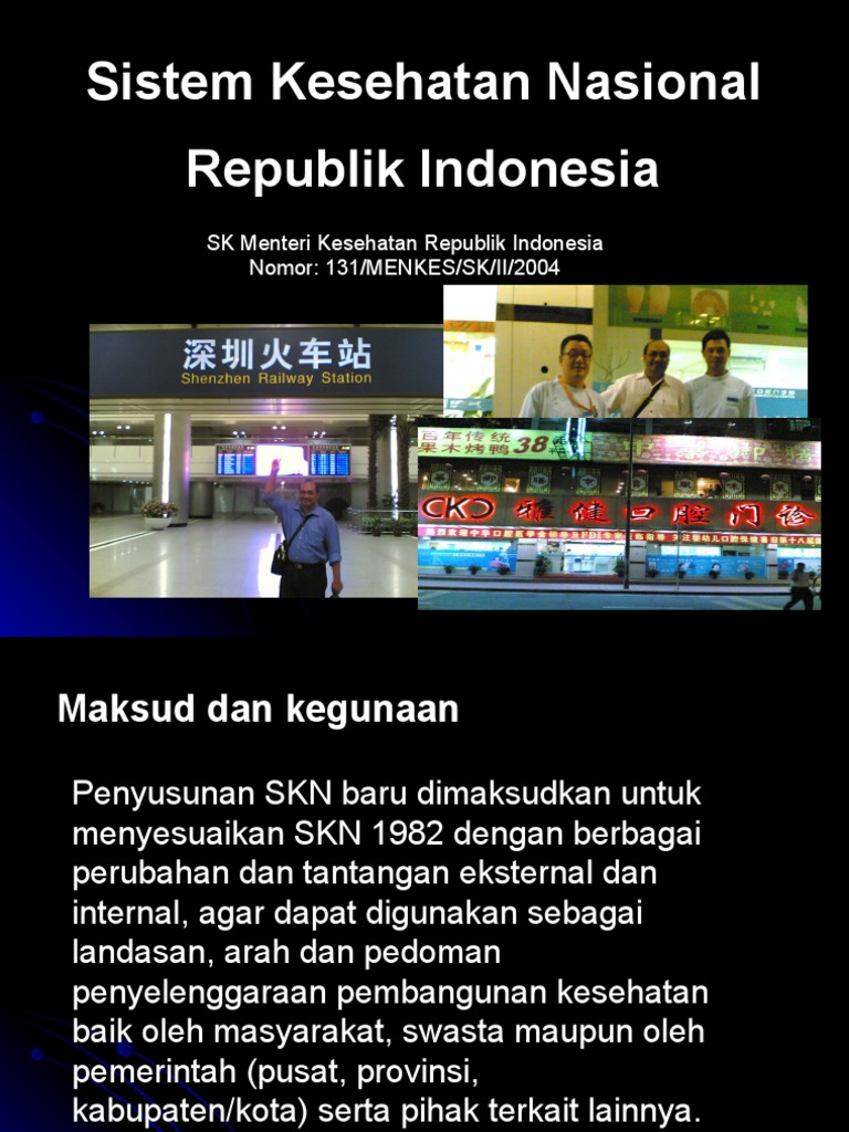 Sistem Kesehatan Nasional (SKN) adalah suatu tatanan yang menghimpun berbagai upaya bangsa Indonesia secara terpadu dan saling mendukung guna menjamin tercapainya. Sistem Kesehatan di Indonesia didukung oleh pembiayaan pemerintah yang cukup besar. Menteri kesehatan republik indonesia, Menimbang. : a. bahwa Pusat Kesehatan Masyarakat sebagai salah satu jenis fasilitas nasional; c. bahwa berdasarkan pertimbangan sebagaimana dimaksud dalam huruf a dan huruf b, perlu menetapkan Peraturan Menteri Kesehatan.