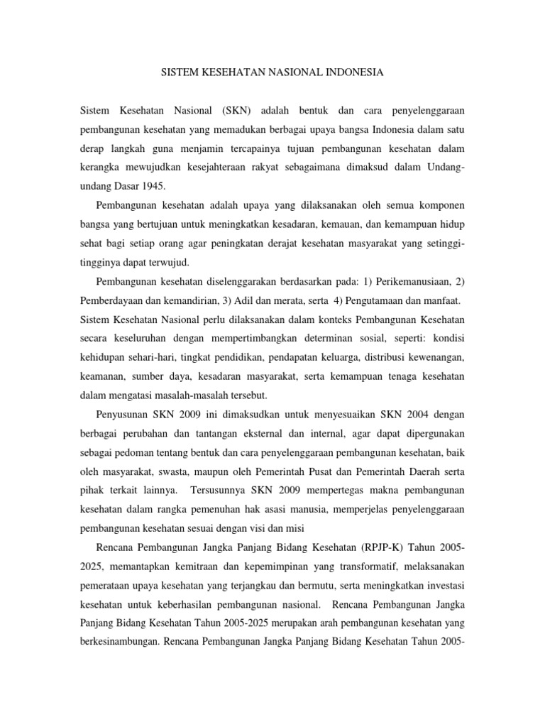 Sistem Kesehatan Nasional Pdf. Sumber Daya Manusia Kesehatan (SDMK) merupakan salah satu subsistem dalam Sistem Kesehatan Nasional yang mempunyai peranan penting dalam mencapai tujuan pembangunan kesehatan sebagai pelaksana upaya dan pelayanan kesehatan. Unsur Subsistem Upaya Kesehatan : a.