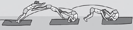Cara melakukan gerakan berguling ke depan ( forward roll) adalah: mula-mula sikap jongkok, kedua kaki.