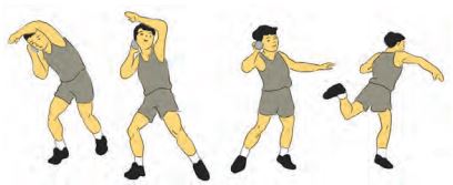 Waktu kedua kaki bergeser ke kiri, peluru dilemparkan dengan cara tangan kanan yang memegang peluru didorong ke arah depan atas, jalannya peluru membentuk parabola diikuti.